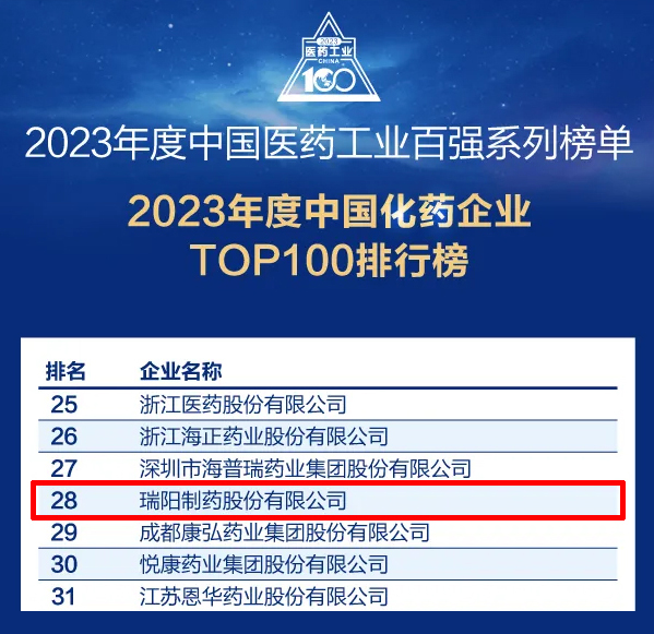 ? ? ? 近日,由米內(nèi)網(wǎng)組織評選的2023年度中國化藥企業(yè)百強(qiáng)榜單公布,公司榮登第28位。此排名是對公司長期專注醫(yī)藥行業(yè)的肯定,也是在智能化轉(zhuǎn)型、產(chǎn)品研發(fā)領(lǐng)域不懈探索成果的體現(xiàn)。未來,公司將持續(xù)聚焦廣大人民群眾的健康需求,為推動(dòng)醫(yī)藥行業(yè)進(jìn)步貢獻(xiàn)力量。 ? ? ? ? ? ? ? ? ? ? ? ? ? ? ? ? ? ? ?